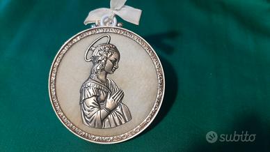 Elegante medaglione da culla in argento 800/1000, di fine anni '60, con punzone visibile ma leggermente usurato.
