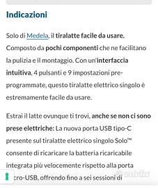Medela SOLO tiralatte elettrico portatile USB, come nuovo, usato con cura.