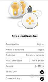 Leggero: con soli 76 g di peso per coppa, Swing Maxi Hands-Free è un tiralatte molto leggero ed è indossabile in modo comodo e discreto all'interno del reggiseno