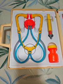 splendido Medical kit Fisher Price 1977. completo di tutti gli accessori, manca solo la membrana dello stetoscopio, il misura pressione è perfettamente funzionante