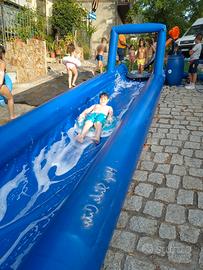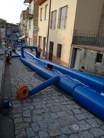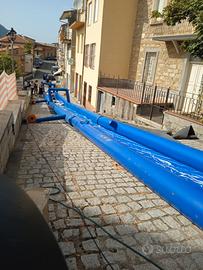 scivolo Mega Slide Citty lunghezza di ingombro compresa erba sintetica 50 MT larghezza 2,50, si scivola con camere d'aria non comprese compresa macchina della schiuma, sul fondo il tappetino anti trauma adatto a tutti grandi e piccoli certificati x l'utilizzo sono compresi 4 motori d'aria per il gonfiaggio e le rispettive prolunghe info 3735261709 astenersi perditempo.