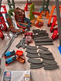 Stazione completa piu altri pezzi di pista sempre tema treno thomas piu 3 treni normali e 2 che vanno a pile con rimorchio i treni si possono attaccare tra loro usata ma in ottimo stato consegna a mano Biella