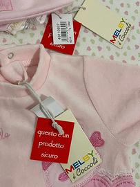 Melby I Coccoli Tutina ciniglia rosa con Piede Neonata 1 mese cappello 3/6 mesi NUOVI CON CARTELLINO con cappello