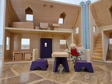 Casa delle bambole, completamente in legno. Marca Melissa & Doug, originale, con tutti gli accessori della casa presenti.