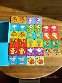 Regole del gioco: mischia le immagini e disponile a caso a faccia in giù su una superficie. Poi ogni giocatore gira a caso due carte a scelta. Se le carte girate hanno la stessa immagine, il giocatore le mette da parte. se le carte sono diverse vengono nuovamente girate a testa in giù . Si tratta di memorizzare il posto delle immagini per poter ricomporre tutte le coppie. Vince che ha collezionato più immagini. Stimola la memoria e lo spirito di osservazione. Gioco completo. La scatola ha la chiusura a strappo , utile in caso di trasporto o viaggio. Disponibile al ritiro in loco.