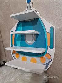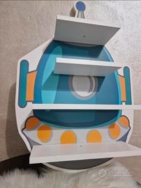 Originale mensola in legno a forma di razzo spaziale, perfetta per una cameretta.
