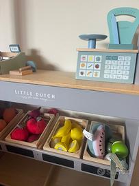 Vendo banco mercato Little Dutch con inclusi accessori (frutta e verdura), bilancia e cassa.