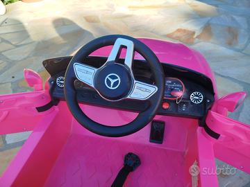 Mercedes Benz Bambina, auto elettrica 6V con telecomando e caricabatteria, colore fucsia, sedile in pelle, in perfette condizioni ed usata pochissimo. manca solo il blocco per la cintura. peso massimo 25 kg, adatta per bambini fino a 3 anni. No spedizione
