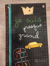 Metro da parete avvolgibile per misurare l'altezza dei bimbi, non ricordo la marca forse Djeco. Unisex, anche bello come idea regalo.