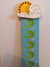 Metro in legno dipinto con Pinocchio e la balena per misurare la crescita dei bambini, fino a 140 cm. Da appendere