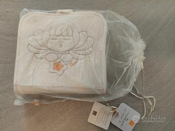 Metro di stoffa Thun per bambini con angelo, per misurare e registrazione la crescita del proprio bimbo/bimba. Nuovo, mai usato, fornito di etichette e custodia originale. Misure complessive 22x100 cm. Va dai 70 ai 140 cm del bambino ed è fornito di 4 tasche trasparenti per le foto e di gancio per appenderlo.