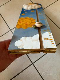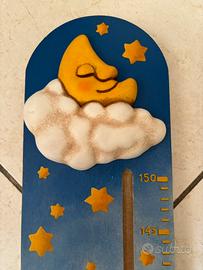 Metro per misurare l'altezza dei bambini della Thun in legno con nuvola, luna ed uccellino in ceramica, da appendere in cameretta, l'uccellino si posiziona da un'altezza da 65 fino a 150 cm.