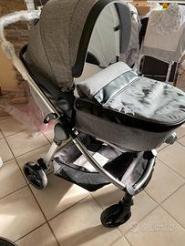 Un pratico sistema modulare studiato da Giordani per rispondere al meglio alle esigenze dei bambini dai 0 ai 3 anni e a quelle dei loro genitori. Il Trio Metropolitan Pro è composto da navicella, passeggino e seggiolino auto Gruppo 0+. È molto compatto e una volta chiuso (chiusura a libro) sta in piedi da solo, occupando poco spazio in casa e nel bagagliaio di qualsiasi auto. Il telaio è in alluminio ultraleggero con le ruote anteriori piroettanti con sistema di bloccaggio e quelle posteriori più grandi con sospensioni e sistema di freno integrato a pedale. Ampio e pratico cestello portaoggetti (portata max 3 kg). La guida è fluida e semplice grazie anche al maniglione unito in ecopelle regolabile in altezza. La navicella è una comoda e spaziosa culla da passeggio omologata auto fino a 10 kg, con kit auto incluso, indicata dalla nascita fino a max 9 kg. Per il comfort del bambino ha lo schienalino reclinabile in due posizioni, imbottiture laterali e a livello della testa, prese d’aria sulla capote. Dimensioni: 107 x 97,5 h 60 cm. Peso: 5 kg. Il passeggino è perfetto per quelle famiglie che amano trascorrere intere giornate fuori casa. La seduta, oltre ad essere reversibile fronte mamma e fronte strada, è completamente reclinabile, trasformandosi così in versione nanna. Età consigliata: dai 6 mesi fino a max 15 kg, circa 3 anni. Dimensioni: aperto: 60 x 86 x h 107 cm, chiuso: 30 x h 78,5 cm. Peso: 8,8 kg. Massima sicurezza e comfort con il seggiolino auto omologato per Gruppo 0+, utilizzabile dalla nascita fino a 9 mesi, per bambini con peso non superiore ai 10 kg. Fin dai primi spostamenti in auto i neonati sono coccolati da due miniriduttori double-face (utilizzabili anche per il passeggino) e dagli spallacci imbottiti. Il seggiolino va installato tramite la cintura a 3 punti dell’auto. Dimensioni: 107 x 86 x h 60 cm. Peso: 3,2 kg. Tutti i rivestimenti sono sfoderabili e lavabili a 30°.
