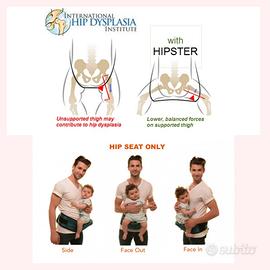 MiaMily Hipster Plus Marsupio 9 posizioni 3 in 1 ergonomico - MiaMily Hipste è un porta bebè unico, dotato di fascia di sostegno, con seggiolino integrato, che consente di trasportare il bambino per tempi più lunghi, con maggiore comodità e senza sforzi.Garantisce al bambino più libertà per osservare ed esplorare il mondo, senza costrizioni. Il suo design ergonomico consente di distribuire il peso uniformemente lungo la parte bassa della schiena e le spalle (se indossato utilizzando anche la parte superiore del porta bebè), per minimizzare gli effetti a lungo termine dovuti alla fatica e a una postura scorretta. Un semplice movimento per un rapido inserimento o uno sgancio immediato: un design che consente di posizionare e prelevare il bimbo in pochi secondi, e addirittura con una sola mano.La base del seggiolino da anca può essere usata da sola, quando si desideri portare il bambino in giro per la casa, dagli amici, durante lo shopping o anche per brevi passeggiate senza alcuno sforzo.è il porta bebè che si adatta a tutte le taglie! La cintura estensibile consente di adattare la base del seggiolino da anca, in modo che possa essere indossato da persone di qualunque taglia. HIPSTERTM con cintura estensibile ha una circon- ferenza di 140 cm. La parte superiore del porta bebè si unisce agevolmente con la cerniera alla base del seggiolino da anca, poggiando su una spalla, in modo da portare il bambino e avere le mani libere.Porta bebè a zainetto– In questa versione del porta bebè la parte superiore si unisce agevolmente con la cerniera alla base del seggiolino da anca, poggiando su ambedue le spalle, in modo da tenere il bambino sempre vicino e avere le mani libere.Progettato secondo criteri ergonomici, per minimizzare le cause mal di schiena, che si manifesta tenendo in braccio il bambino.pieghevole, pratico e adatto a tutte le taglie. Articolo PERFETTO; Conservato con cura maniacale, lontano da fonti di calore, luce,umidità e sole. € 50,00