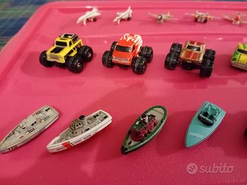 vendo numero 23 veicoli vari micro machines Galoob. i 4 aerei a elica hanno le eliche rotte i restanti modellini sono in condizioni ottime sia come verniciatura che le ruote. i modellini sono: 4 aerei ad elica, 2 jet, 3 monster truck, 1 auto medica, 4 auto da corsa, 3 navi, 1 motoscafo, 3 auto, 1 schiacciasassi ed un camion.