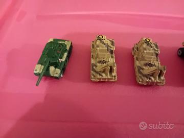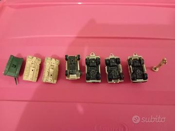 vendo in blocco numero 7 veicoli militari micro machines, i 3 cingolati sono in ferro, il carro armato ha la torretta cannone che ruota, gli altri 4 hanno le ruote perfettamente integre e funzionanti più soldato con binocolo. Tutto come da foto.scatola non presente.