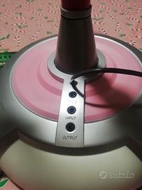 Microfono ad asta per bambini, asta regolabile, altezza minima 65 cm ca, altezza massima 120 cm ca,diametro base microfono 27 cm ca, primi anni 2000, ottime condizioni, unico difetto la sede interna delle pile si è un po ingiallita causa il tempo, funziona perfettamente , volume regolabile, Smoby