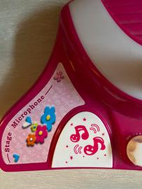 Microfono da palcoscenico I Girl Bontempi; asta regolabile, brani preregistrati, regolazione del volume e degli effetti applausi, effetti luminosi, facile da montare. Batterie da sostituire