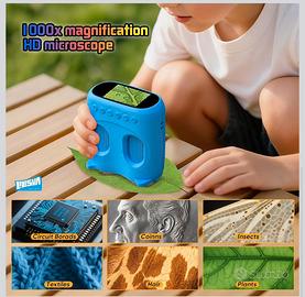 Microscopio e telescopio 2 in 1, mini microscopio portatile tascabile 1000X, telescopio portatile 1000 m, telescopio 10X per bambini, telescopi per bambini con 1920P, ottimo giocattolo scientifico per bambini. Nuovo mai usato ancora nello scatolo.