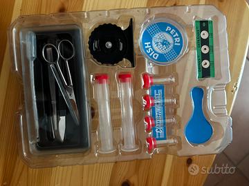 •Piastre Petri, provette, pinzette, forbici, spatola, pipetta, aghi, etichette