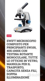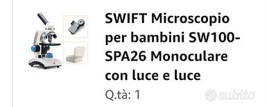 Microscopio per ragazzini, nuovo, ancora imballato, vendo causa doppio regalo ricevuto, completo di valigetta con vetrini. Ottimo regalo di Natale