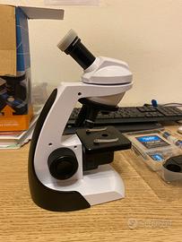 Vendo microscopio ottico Playknowlogy 800x, ideale per ragazzi, studenti e appassionati di scienze. Questo kit completo include tutto il necessario per esplorare il mondo microscopico: vetrini preparati, strumenti per preparare nuovi campioni e accessori didattici per esperimenti scientifici divertenti e istruttivi.