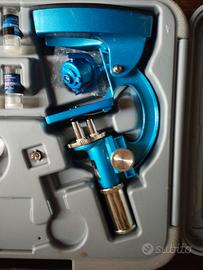 Gioco microscopio, un vero microscopio funzionante con vetrini e luce. inclusa lente di ingrandimento e lampada di ricambio per il microscopio. è usato ma perfettamente integro