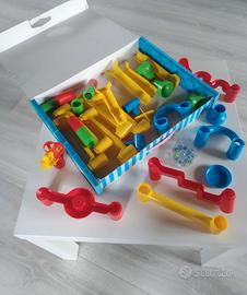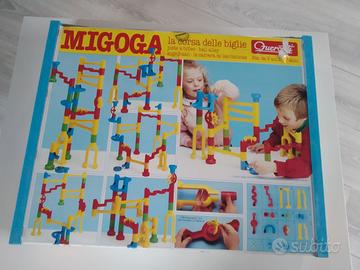 Vendo gioco vintage anni 90 Migoga la corsa delle biglie marca Quercetti usato ma ben conservato con la sua scatola originale.