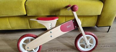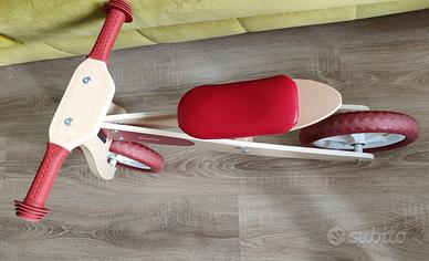 Vendo bicicletta senza pedali ideale per imparare ed acquisire equilibrio. Tenuta benissimo, pari al nuovo. Da vetrina. Ha il telaio in legno massello, ruote gommate che non rigano e non segnano. Altezza regolabile. Tutti sanno che il segreto della bicicletta è l'equilibrio e il segreto dell'equilibrio è il moto: principi a portata di bambino. Prima ancora di pedalare, i bambini impareranno a studiare movimento, velocità ed equlibrio procedendo a piccoli passi sempre più sicuri, sino a pedalare in tranquillità. Questa bicicletta senza pedali rossa è realizzata in legno massello, che la rende particolarmente robusta. Il manubrio è dotato di impugnature in gomma per offrire il massimo comfort al bambino. La sella imbottita rende la bici comoda da guidare. Le ruote gommate possono proteggere le superfici del pavimento dai graffi. Questa bicicletta aiuta a sviluppare il senso di orientamento, migliora la coordinazione dell'equilibrio e migliora le capacità motorie.