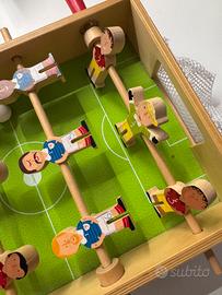 Mini calcio balilla in legno con 4 file di giocatori (12 giocatori in totale) e 2 palline di legno per bambini dai 3 anni in su.