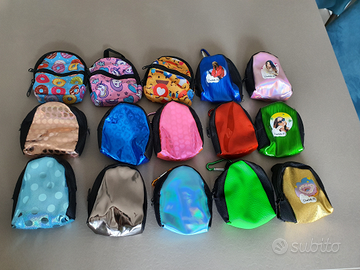 Mini zainetti con materiale scolastico in miniatura, penne,matite,gomme,evidenziatori,nastro adesivo, quaderni, forbici, temperamatite,adesivi e tanto altro!