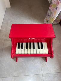Bellissimo mini pianoforte Hape in legno laccato rosso, perfetto per introdurre i più piccoli al mondo della musica!