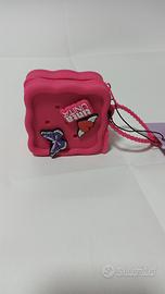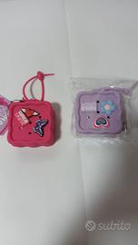 mini pouch di tinta unita in silicone con 3 pins, colore rosa e lilla