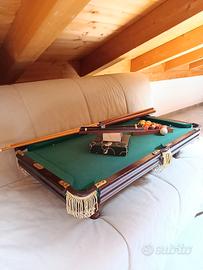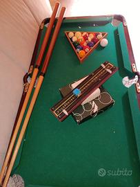 tavolo da biliardo completo di stecche ,palle,triangolo,gessetti,birilli 95x55