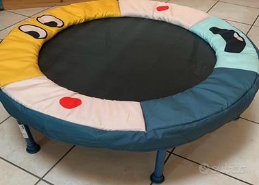 Usato solo in casa internamente non esternamente. Ancora in ottime condizioni per informazioni sono a disposizione Informazioni per l'utilizzatore Diametro esterno: 90 cm. Diametro del telo di salto: 63cm. Altezza: 24 cm. Superficie di salto: circa 6360 cmz. Peso massimo dei giovani saltatori: 25 kg.