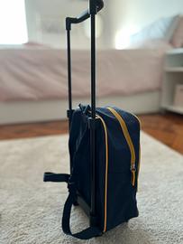 Mini Trolley, nuovo, con rotelle e manico regolabile in altezza, portabile anche come zaino, tasca anteriore con zip.