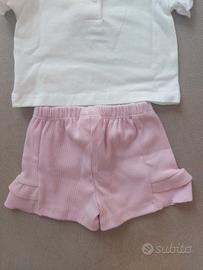 Completo neonata 0-3 mesi nuovo con cartellino, composto da t-shirt a manica corta + pantaloncini, colori bianco/rosa
