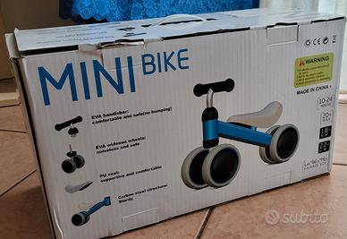 Minibike bimbi 1-2 anni in ottime condizioni. Le ruote doppie la rendono molto stabile. Le ruote sono in gomma e non in plastica, sono quindi molto silenziose anche in casa. Usata anche in esterno senza problemi.