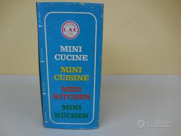 Minicucina giocattolo (Lac), anni '60, con scatola originale. Mai usata: proviene dalle rimanenze di un negozio di giocattoli chiuso negli anni '80.