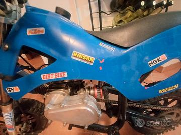 ciao vendo minimoto 50cc benzina filtro a cono nuovo pochi utilizzo ho aggiunto anche spegnimento con bottone visibile in foto regolatore velocità in base a quanto si vuole far andare... nel prezzo cedo anche rotelle per bambini che ancora non sanno andare sensa... vendo per inutilizzo mio figlio è cresciuto e mi è rimasta in cantina per domande e chiarimenti contatto email poi per il ritiro lascio il numero...grazie saluti