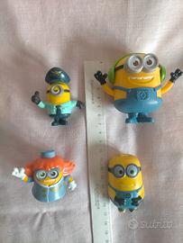 4 personaggi Minion dei cartoni animati (3 in plastica e 1 morbido)