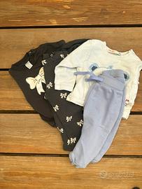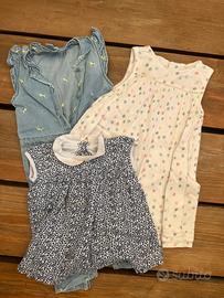 1 vestito a quadretti Lil’atelier 9-12 mesi 1 vestito manica lunga cotone leggero petit bateau Salopette in jeans Obaibi Set felpina piu leggins h&m Pantalone tuta lilla benetton Felpina bianca Babybol Set manica corta piu leggins verde acqua h&m Pagliaccetto petit bateau manica corta e pantalone corto Vestitino bianco a pois bout’chou Regalo: vestitino petit bateau (per alcune macchie) Vestitino garzato rosa