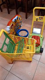 Tagliaerba rotante con rumore, carrello per la spesa, canestro basket parlante nei numeri e nel cesto.