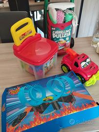 Mix Giochi comprensivo di: -pista macchine (macchinina a trazione con molla inclusa) - mattoncini per costruzioni prima infanzia - pick up giocattolo Consegna a mano su Modena