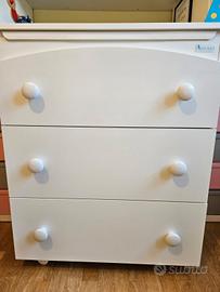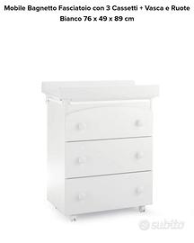 vendo mobile fasciatoio 3 cassetti con rotelle funzionanti, ottime condizioni, vaschetta da bagno mai utilizzata.