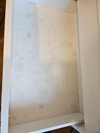 il primo cassetto leggermente macchiato da prodotti da bagno, facilmente risolvibile con pellicola adesiva.