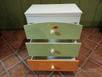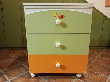 mobile fasciatoio MIBB con ruote e vaschetta per bagnetto incorporata più tre cassettoni