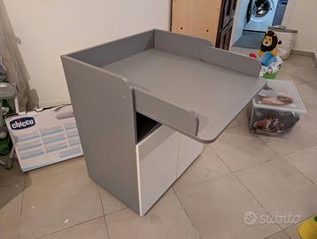 Fasciatoio con ripiano estensibile e comode ante sottostanti con vari ripiani. Manca solo il materassino per il fasciatoio che può essere acquistato a parte.