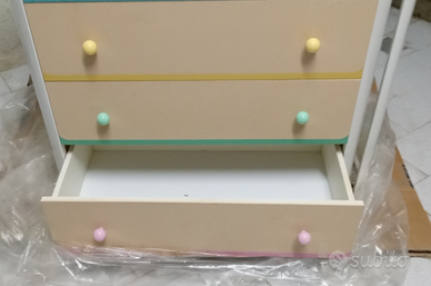 Vendo mobiletto a 4 cassetti, con fasciatoio per neonato, con ruote per spostarlo, ottime condizioni.