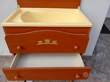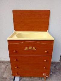 Mobiletto fasciatoio legno con quattro cassetti. Decoro unisex, orsetti.